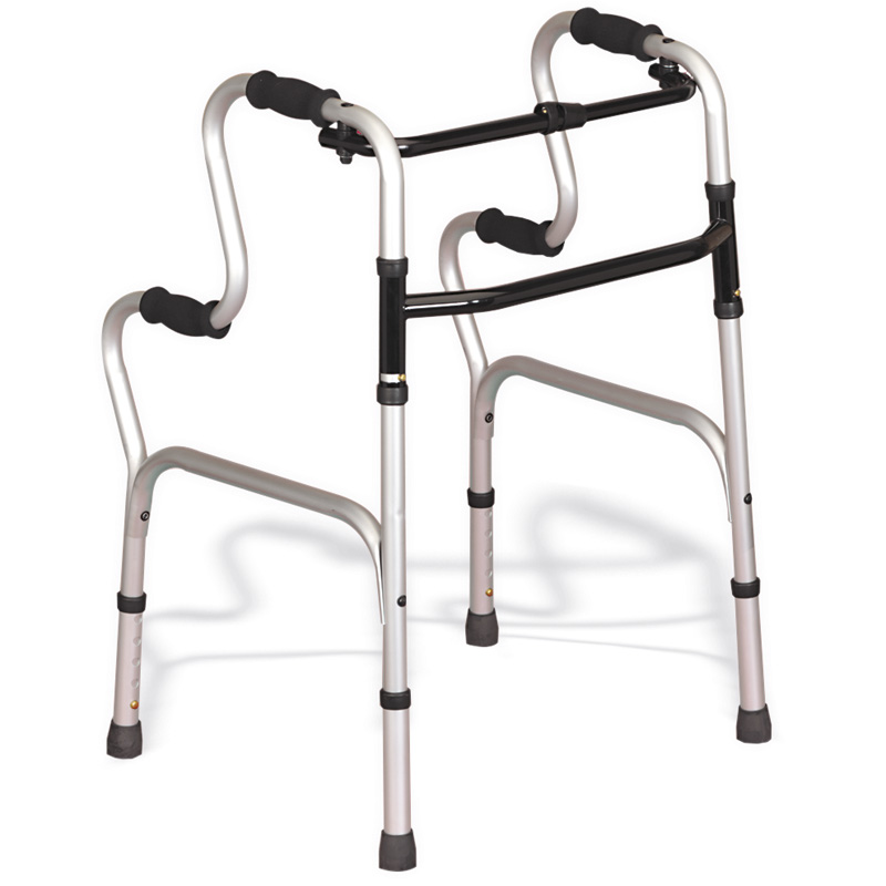 A3 articulated walker in aluminum, with handles on 2 levels. The handle at the lowest level facilitates lifting independently and gradually. It has the characteristics of a fixed walker and the added value of the articulation. Allows to become fixed when necessary through an existing hand device. Foldable for better storage. Height adjustable from 890mm to 990mm. With non-slip rubber tips for greater safety.