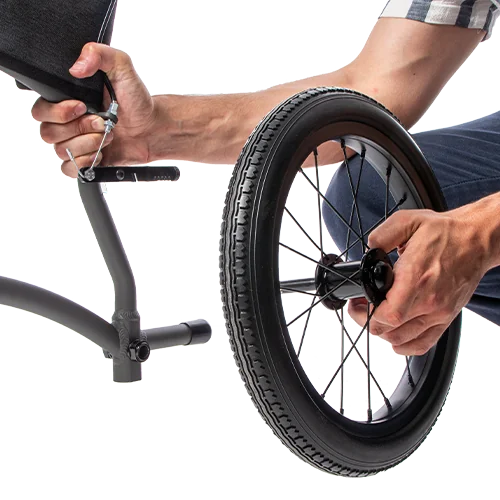 Equipada com rodas traseiras de 33 cm de diâmetro, proporciona assistência eficiente ao impulso. O sistema de extração rápida das rodas traseiras e o encosto rebatível garantem maior praticidade na hora de guardar ou transportar a cadeira.