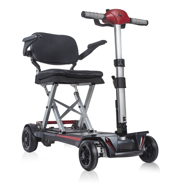- Ultracompacta – Com apenas 97 cm de profundidade e 46 cm de largura (sem apoios de braços), adapta-se facilmente a portas estreitas, corredores e pequenos elevadores.