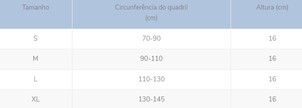 O fecho dianteiro da ortótese é feito através de um velcro macho que se aperta sobre outro fêmea de grandes dimensões o que confere ao dispositivo um amplo grau de regulação. O resultado final é a adaptação à forma cónica do tronco do utilizador o que lhe confere um conforto notável. Fechos de Velcro®. Cinta sacrolombar constituída na base de 2 elásticos contínuos com 8 cm de largura. Indicações: Lumbago, lombociática, reabilitação, fragilidade muscular, processos degenerativos.