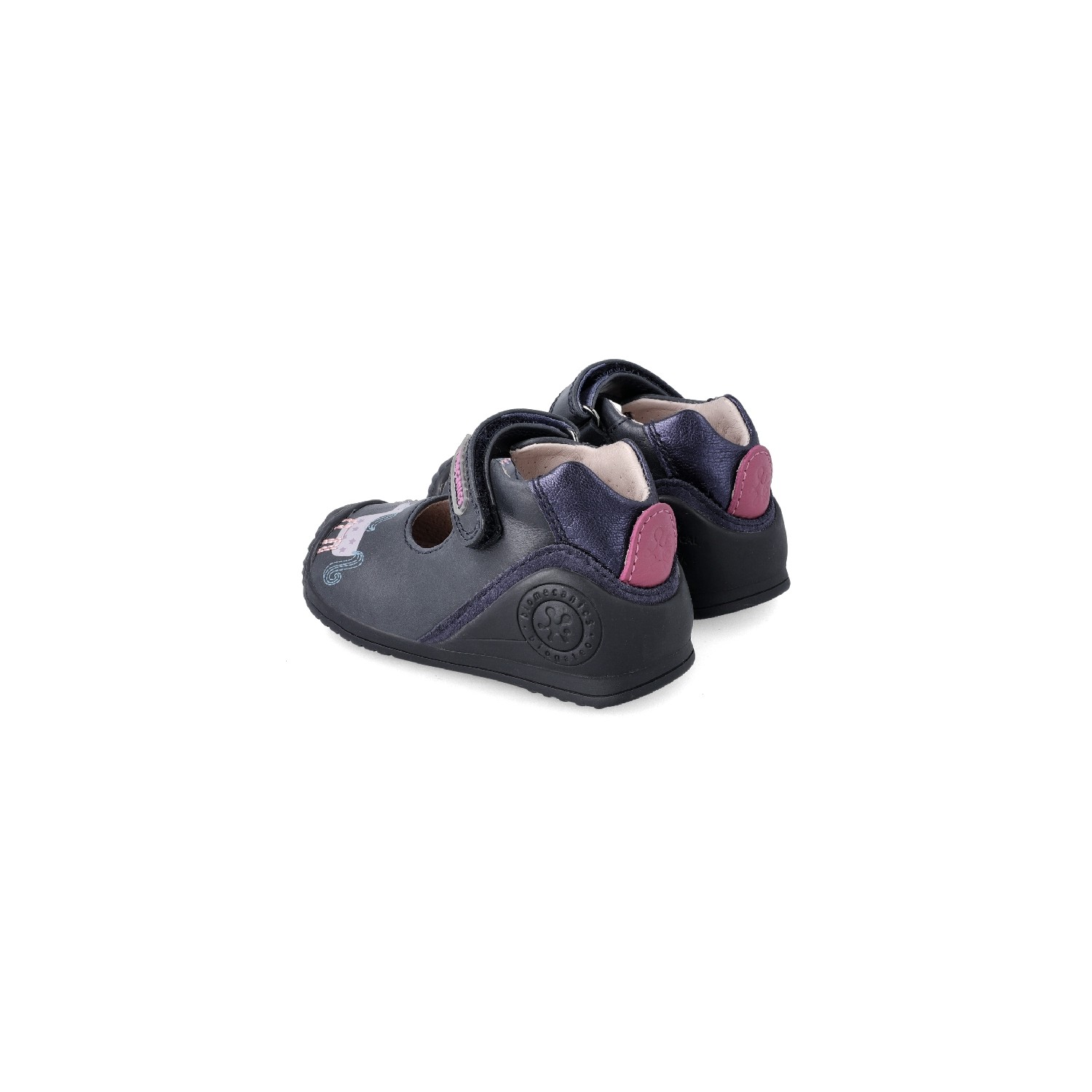 Merceditas in leather with matching sole. A shoe full of fantasy that will accompany your first steps providing the stability and security that this phase of development needs.