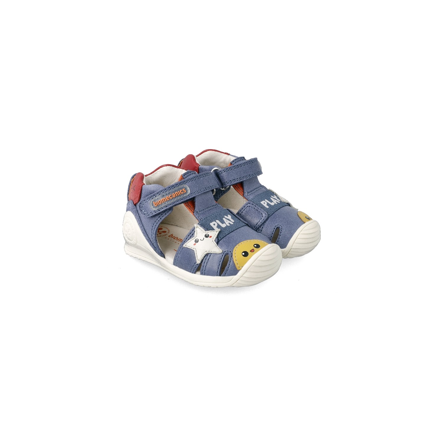 Sandálias em couro fantasia. O sapato perfeito para os primeiros passos. Com a nossa linha Biogateo eles avançam com mais segurança e estabilidade graças à flexibilidade da sola e da biqueira reforçada.