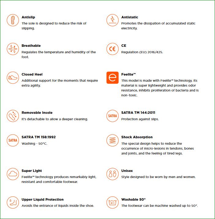 With EVERLITE you can be even more efficient in everything you do. EVERLITE is ideal for uses where prolonged standing or walking may tend to induce foot discomfort or lower body fatigue, especially to be used in: Hospitals and Other Healthcare Institutions, Cleaning Companies, Pharmaceutical Industry, Geriatrics and Physiotherapists. With insole included.